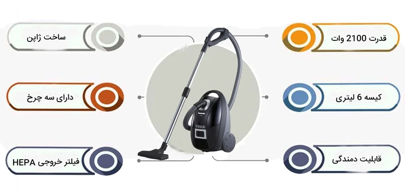 جاروبرقی پاناسونیک مدل MC-CG715 یکی از بهترین و بادوام‌ترین مدل‌های جاروبرقی کیسه‌دار است که با قدرت مکش بالا و طراحی ارگونومیک، نظافت خانه را به تجربه‌ای آسان و بی‌دردسر تبدیل می‌کند.