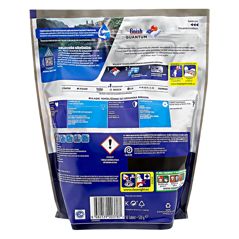 قرص ماشین ظرفشویی فینیش quantum بسته 50 عددی متعلق به شرکت رکیت بنکیزر، تولید می‌شود و نسخه 50 تایی آن در ترکیه ساخته شده است.